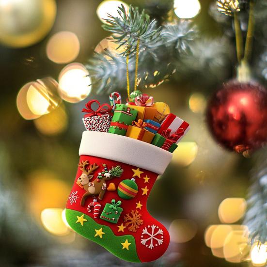 Christmas Socks Santa Claus Red Hanging Ornament Acrylic Decorative Keychain Pendant