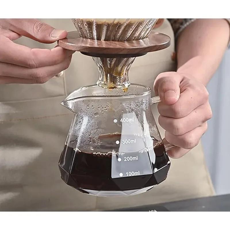 Glass Coffee Server for Drip Coffee Maker,Diamond Fashion Design Glass Coffee Carafe,Coffee Pot with Lid,Pour Over Coffee Filter