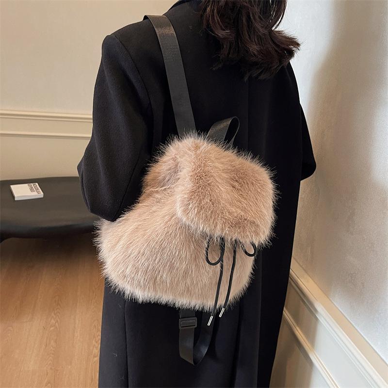 New plush backpack imitation rabbit fur backpack student girl large capacity drawstring casual solid color bag