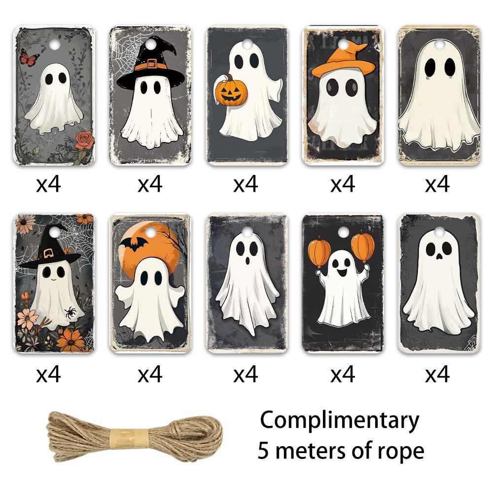40pcs, Halloween tags, hang tags, gift tags, party decorations, DIY, holiday home decor, party cards, ornaments, jute rope