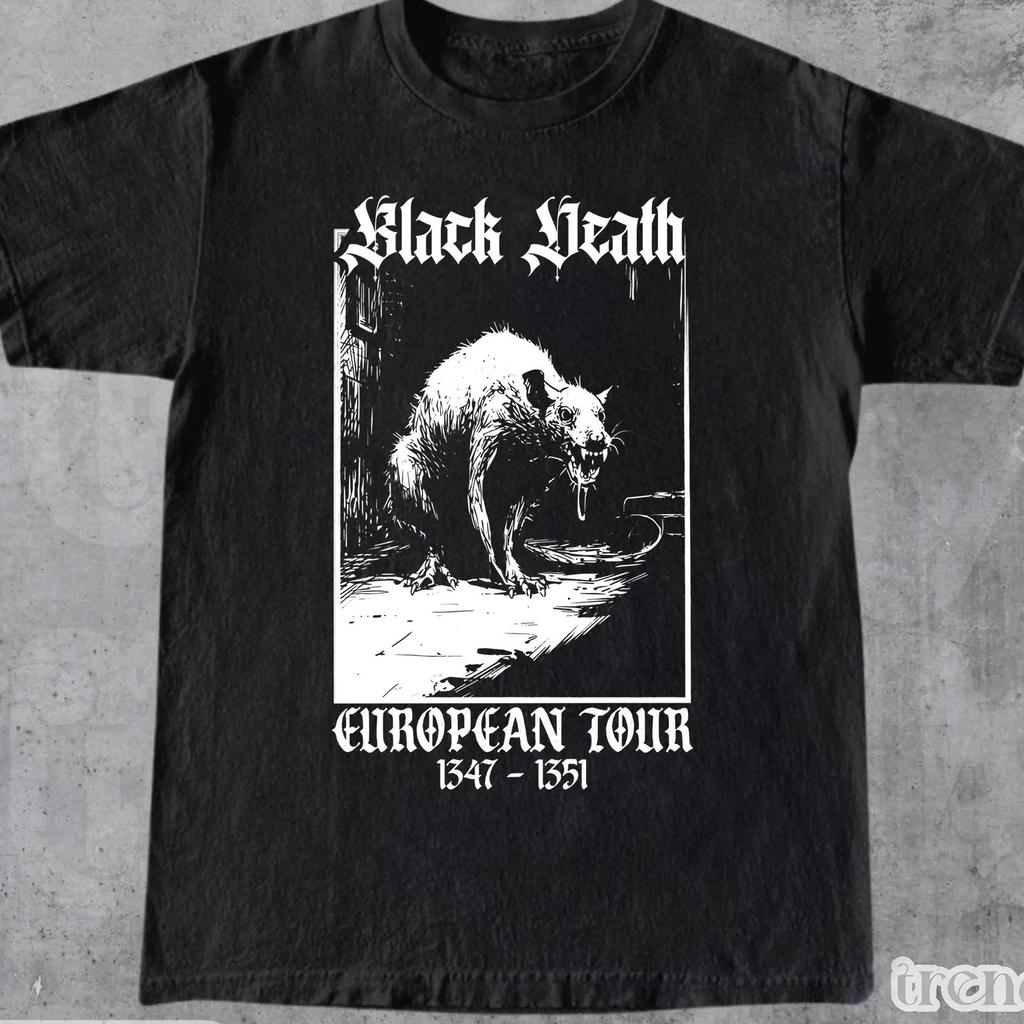Black Death European Tour Vintage Graphic T-Shirt, Retro Gothic Medieval Plague Rat Dark Art Tshirt, Funny Middle Ages Shirt
