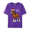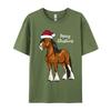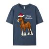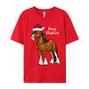 Cute Cartoon Clydesdale Draft Horse Christmas T-Shirt Men Crew Neck Camisas Men Printed Tops Tee Pure Cotton
