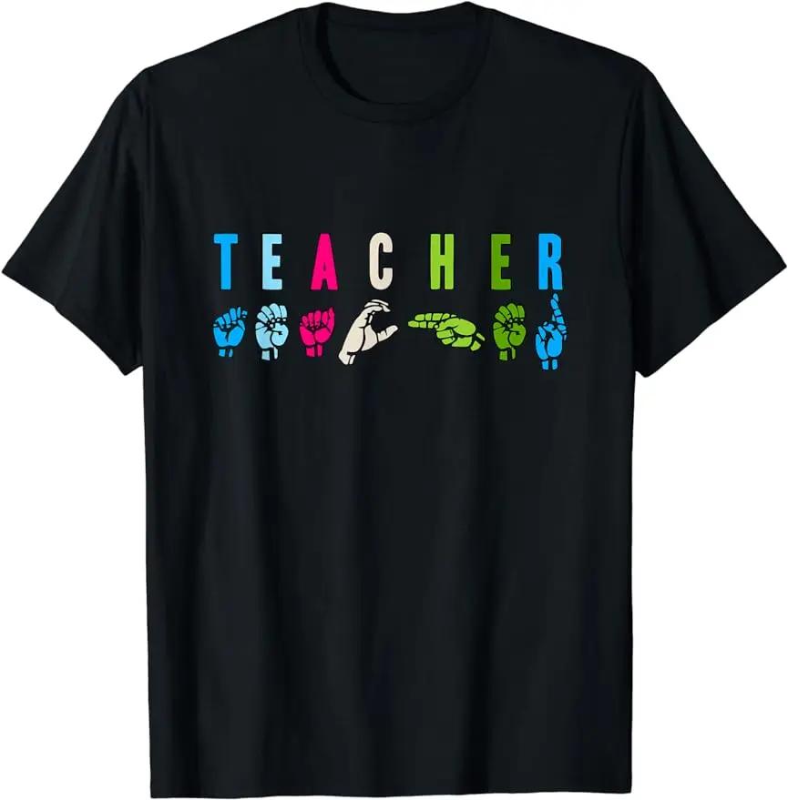 Proud Teacher ASL Sign Language Gestures T-Shirt Unisex Style Printed Women Men Clothing Graphic TShirts Anime Clothes