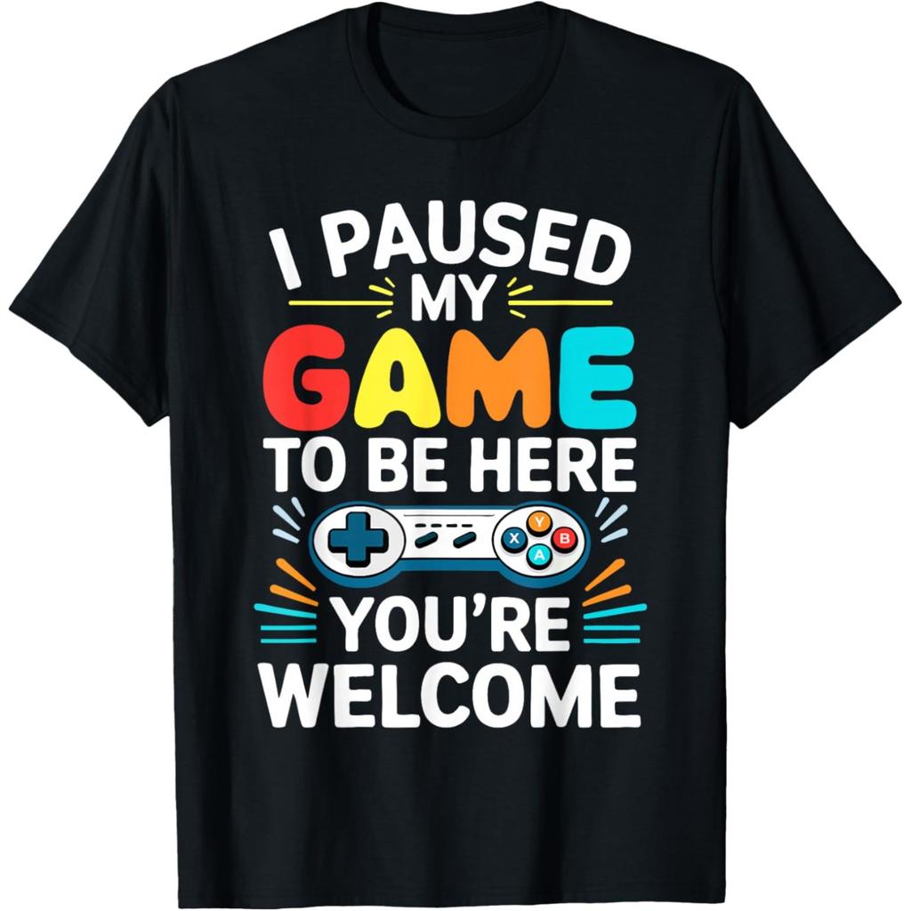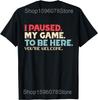 I Paused My Game To Be Here Video Gamer T Shirts Men Pure Cotton Humor Streetwear Tee Shirt Short Sleeve Unisex Loose Clothing