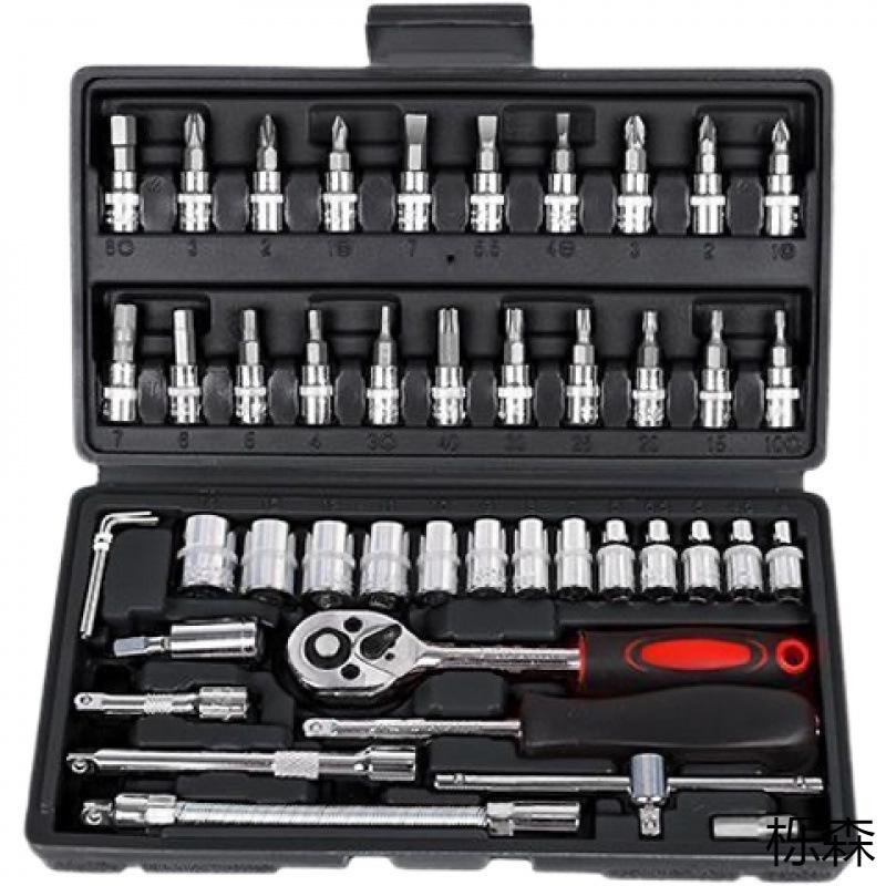 46-Piece Multifunctional Ratchet & Socket Wrench Tool Set for Cars and Motorcycles