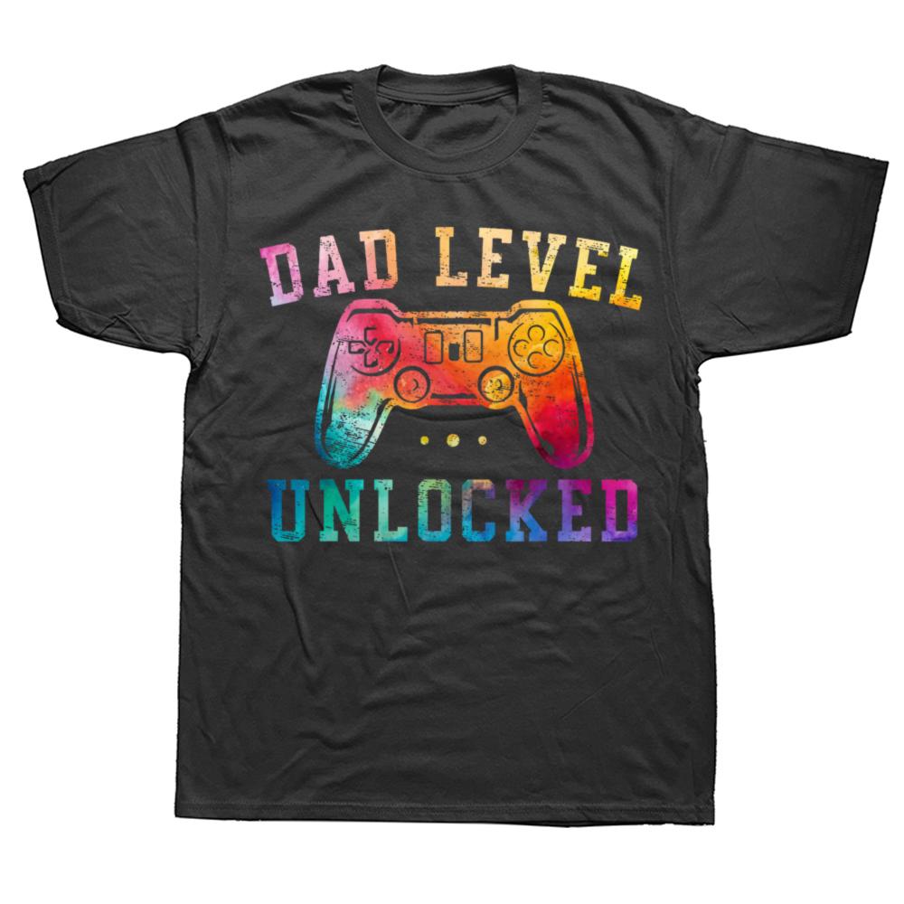 Funny Dad Level Unlocked New Dad To Be Gifts Gamer Father's Day T Shirts Streetwear Short Sleeve Birthday Gifts T-shirt Men