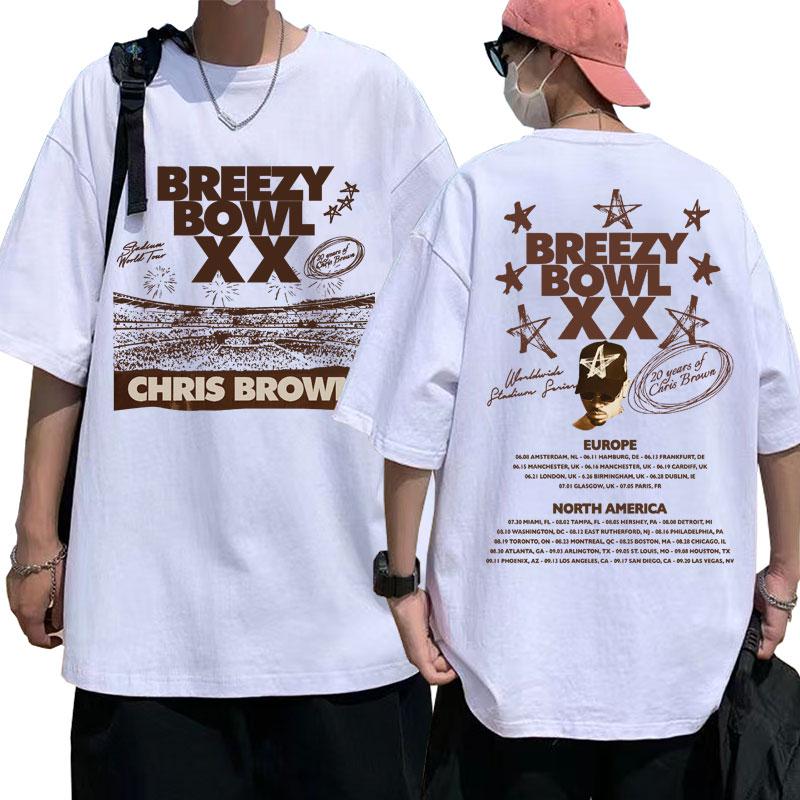 Rapper Chris Brown Breezy Bowl XX Tour 2025 T Shirt Men's Hip Hop Retro Short Sleeve Oversized Cotton Casual T-shirt Streetwear
