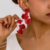 Modă 2026 cercei exagerați tridimensionali geometrici cu pliuri și flori pictate, potriviți pentru ținute stradale, petreceri, vacanțe