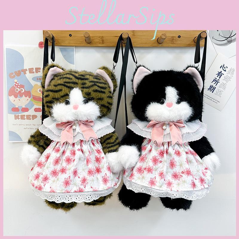 Cat Tiger Pattern Floral Skirt Plush Backpack Animal Adjustable Shoulder Strap