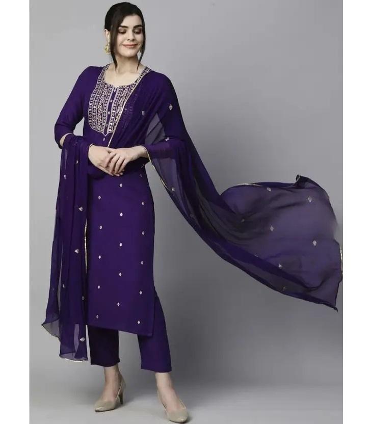 Women Party Wear Top Tunic Cotton Blend Kurti Pant Dupatta Set Indian Designer Ethnic Salwar Suit