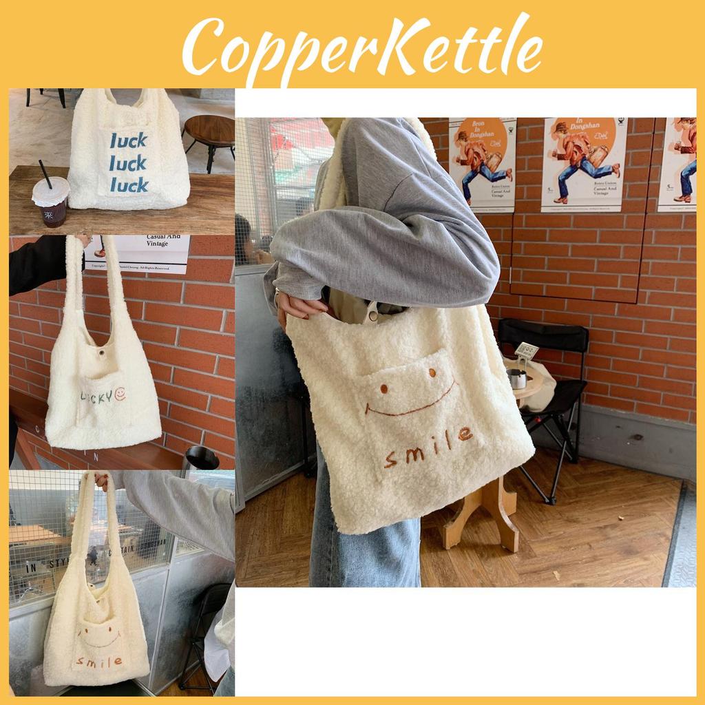 Introducing the delightful 110303 Winter Plush Pocket Embroidered Vest Bagyour new go-to accessory for the chilly seasons ahead. Embrace a fresh and sweet style with this charming tote bag, perfect for adding a touch of whimsy to your everyday outfits. Available in three delightful designs: Smile, Good Fortune, and Triple Good Fortune, this bag is more than just a practical item; it's a statement piece that radiates positivity and cheer.