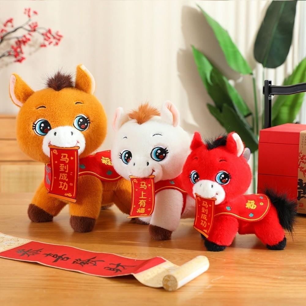 Soft Stuffed 2026 New Year Mascot 20/25/30cm Plush Stuffed Animal Zodiac Horse Doll Birthday Gifts