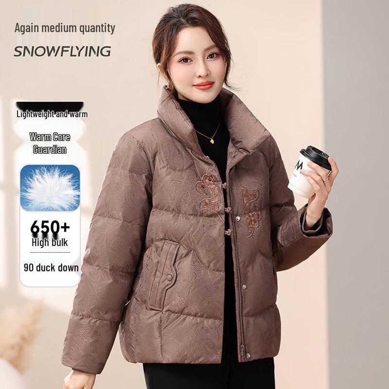 SNOWFLYING Women's Floral Embroidered Winter Down Jacket