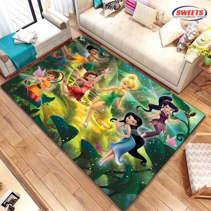 NO.1Cartoon Disney Princess Carpet,Tinker Bell Living Room Bedroom Bed Mat,Comfortable Non-slip Durable Rug,Machine Washable Rug
