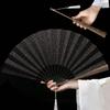 Model Nor Evantai Pliabil din Hârtie de Orez Fin Sculptat Pânză de Mătase Neagră cu Stropi Aurii Model Antic Val de Mare Evantai China-Chic