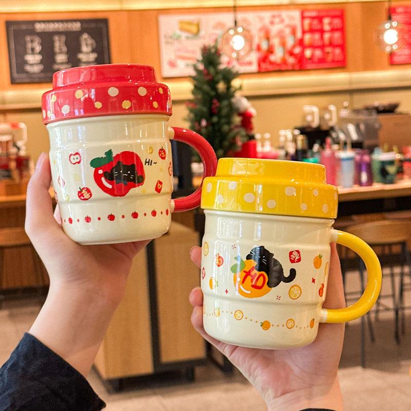 High-value apple mug couple pair cup household drinking cup cute ceramic cup with lid female birthday gift