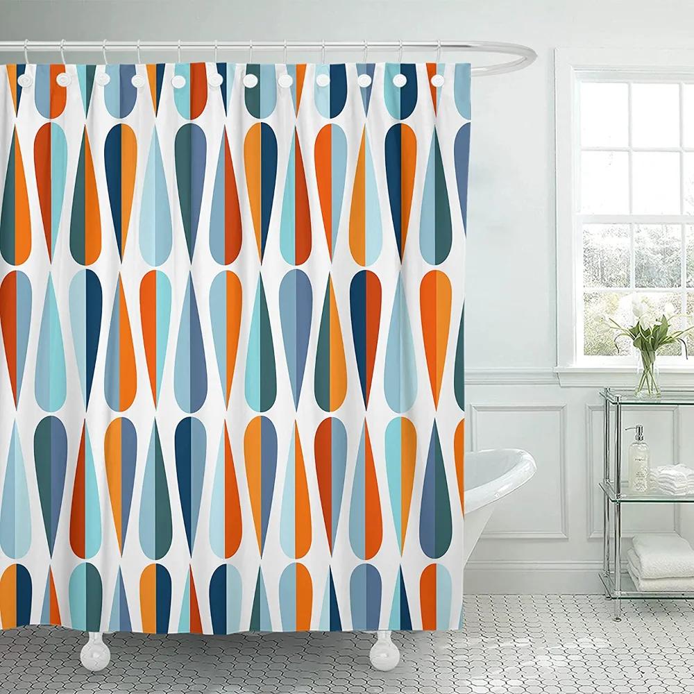 Color Geometric Shower Curtain Set Mid Century Modern Retro Drop Shapes Abstract Art Bathroom Polyester Fabric Curtains Hooks