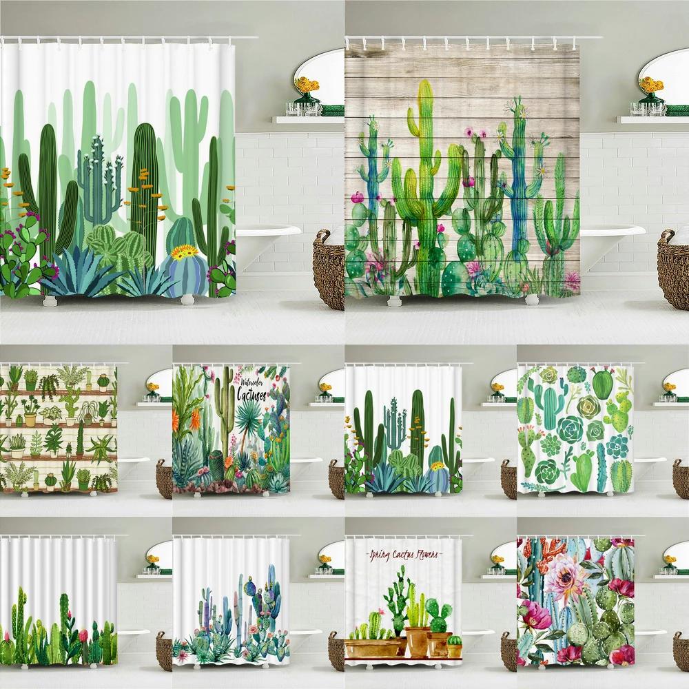 Cactus Shower Curtains Waterproof Polyester Fabric Shower Curtains Tropical Plants Bathroom Screen Curtain Home Decor 180X180Cm