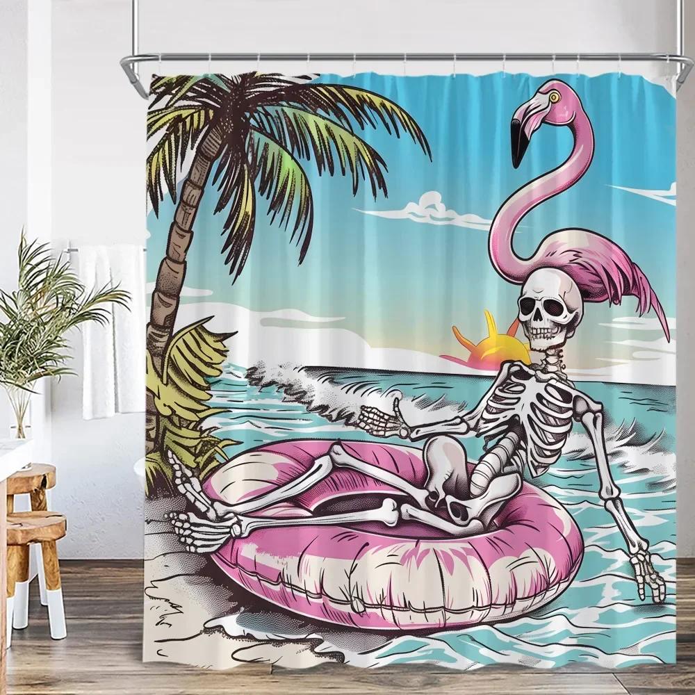Funny Skull Bone Shower Curtain Halloween Flower Green Leaves Bathroom Decoration Vintage Skull Polyester Shower Curtain