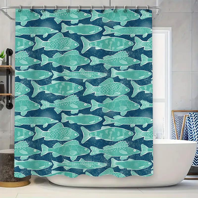 Blue Fish Print Shower Curtain Polyester Fabric Waterproof Bathroom Decor Wall Hanging Home Decor Accessories For Bathtub Enclos