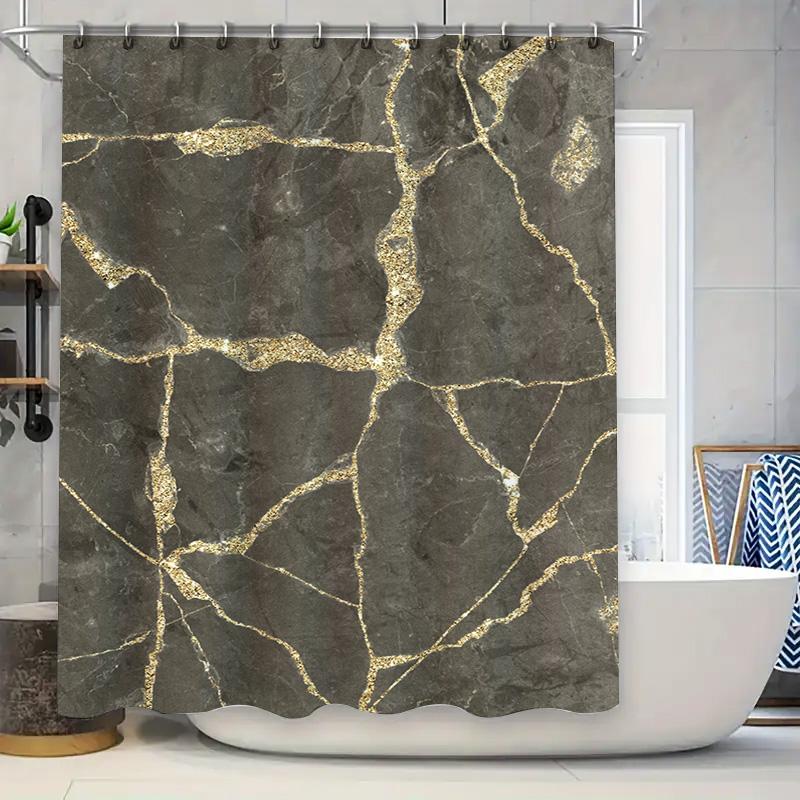 Luxury Black Marble Shower Curtain With Gold Accents Bathroom Decor For A Touch Of Elegance