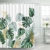 Tropical Palm Leaves Shower Curtain Set Green Plant Leaves Leaf Pumpkin Red Truck Halloween Christmas Decor Bathroom Curtains