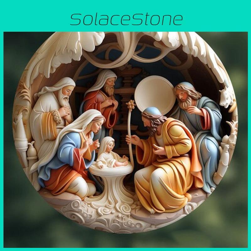 Decor Agățat Complicat Scenă a Nașterii lui Isus Acrilic Pentru o Atingere Vintage Crăciun