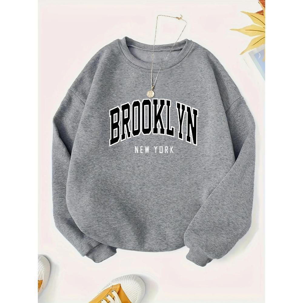 2025 Women's Casual BROOKLYN Print Pullover Sweatshirt Long Sleeve Round Neck Regular Fit for Autumn Winter Women Clothing
