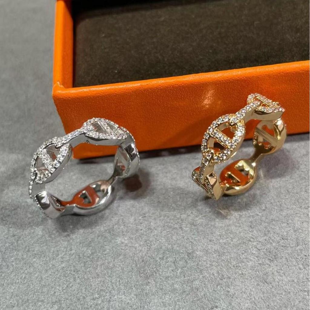 Inel V Gold Versiune Înaltă pentru Femei, Gros, Aur Roz 18k, cu Inel Nas Porc și Diamant de Carbon Înalt Integral - Inel Elegant și Versatil Seria H.