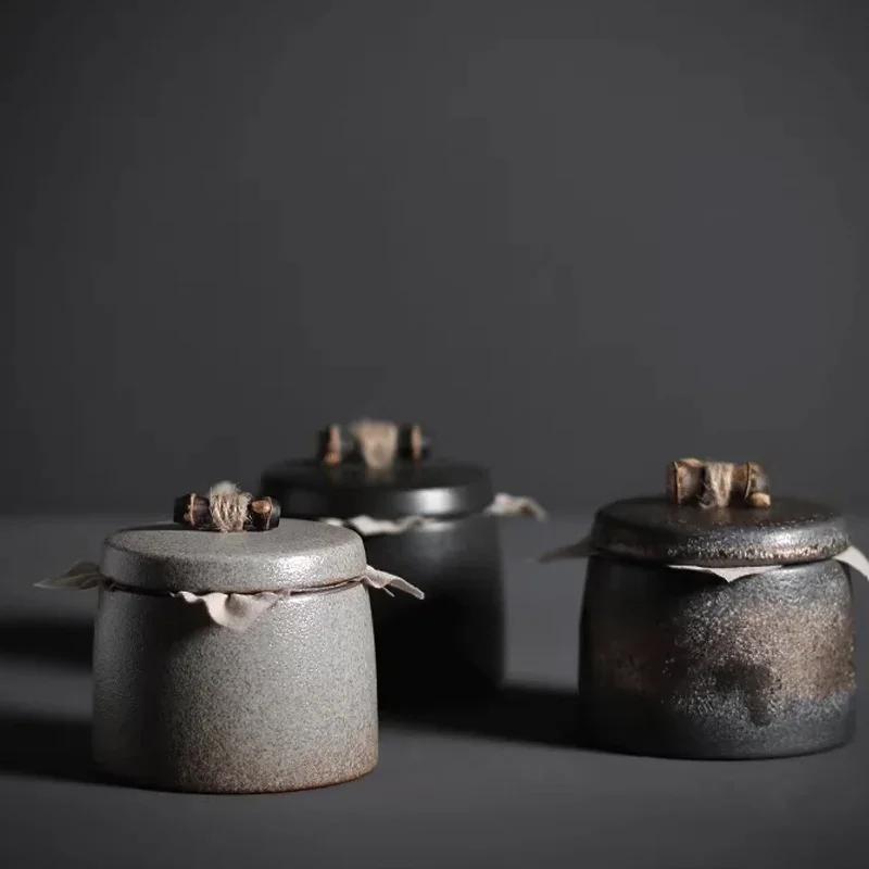 Ceramic Moisture-proof Sealed Tank Tea Caddy Organizer Home Storage Tank retro black ceramic moisture-proof sealed jar Tea Can
