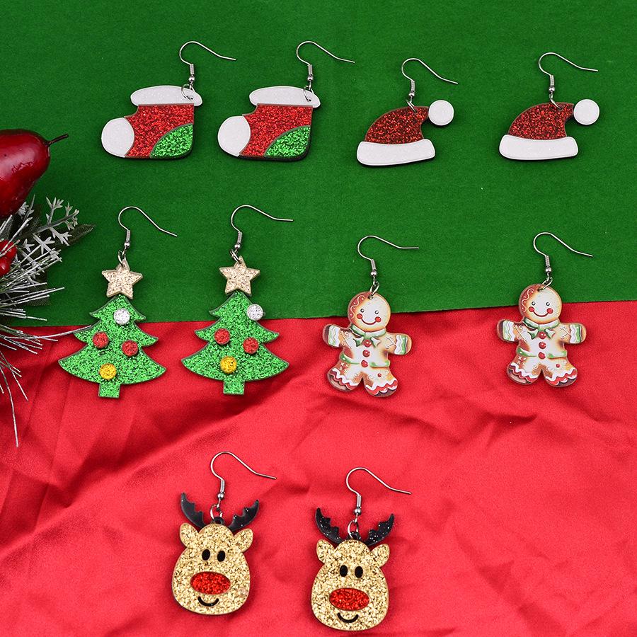 Festive Colorblock Gingerbread Man & Christmas Tree Sequin Earrings