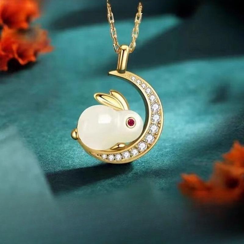 Moon Rabbit S925 Silver Jade Necklace - Elegant Clavicle Chain Gift for Women