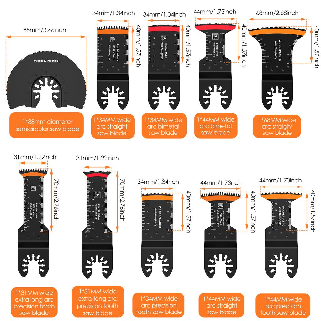 8-15Pcs Japanese Tooth Oscillating Saw Blades Oscillating Multitool Blades Bi-Metal Curved-Edge Cutting Oscillating Tool Blades