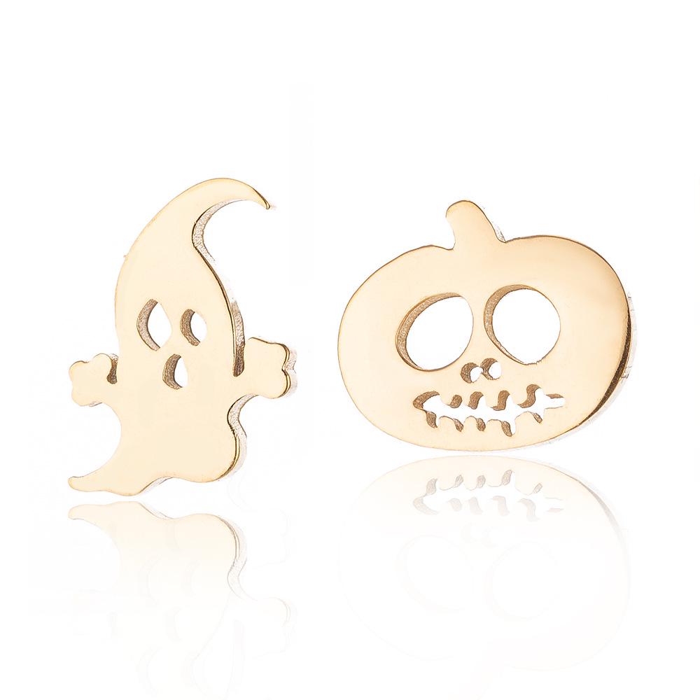 Retro Halloween Pumpkin & Ghost Stud Earrings - Stainless Steel, Cute Gift for Women & Best Friend