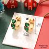 Emerald Zircon Gold-Plated Copper Vintage Earrings - European & American Christmas Edition
