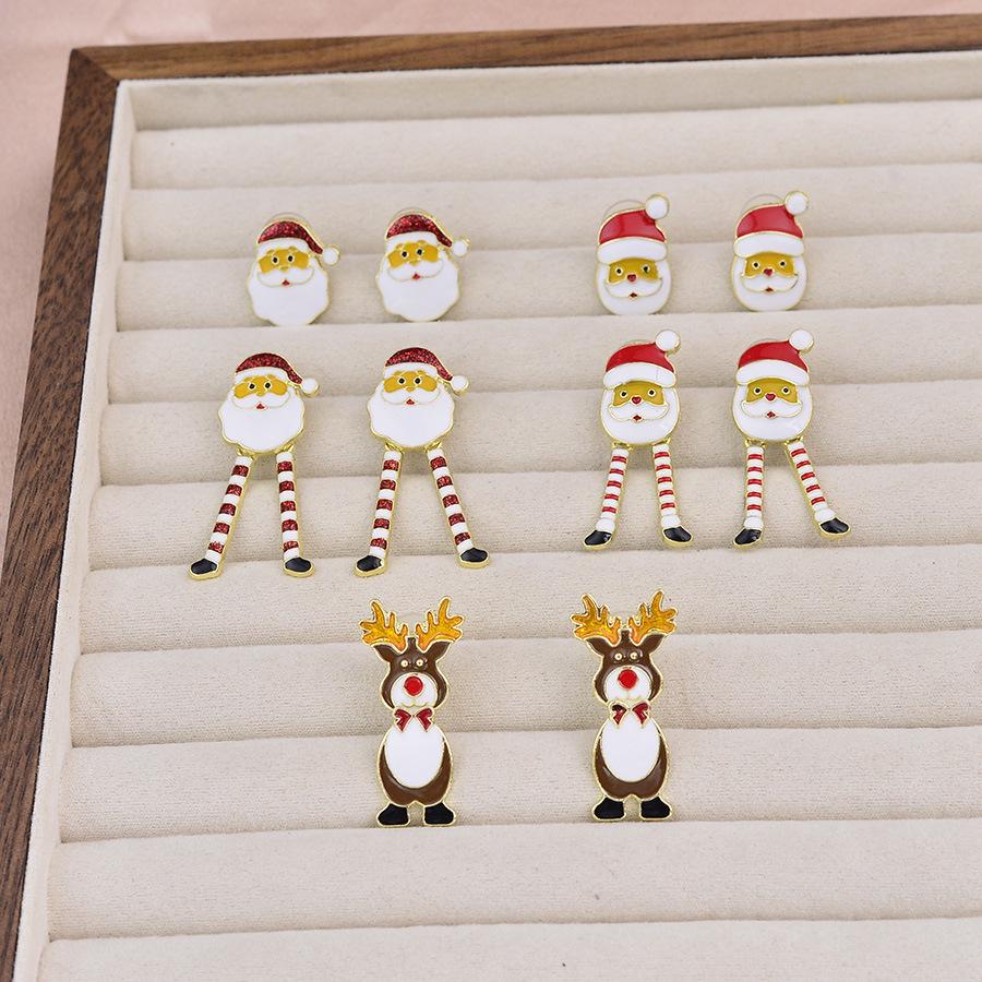 European and American Style Quirky Christmas Earrings - Long-Legged Santa Claus & Reindeer Cartoon Jewelry