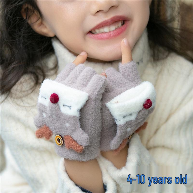 Children's Winter Warm Reindeer Flip-top Fingerless Gloves for Ages 4-10