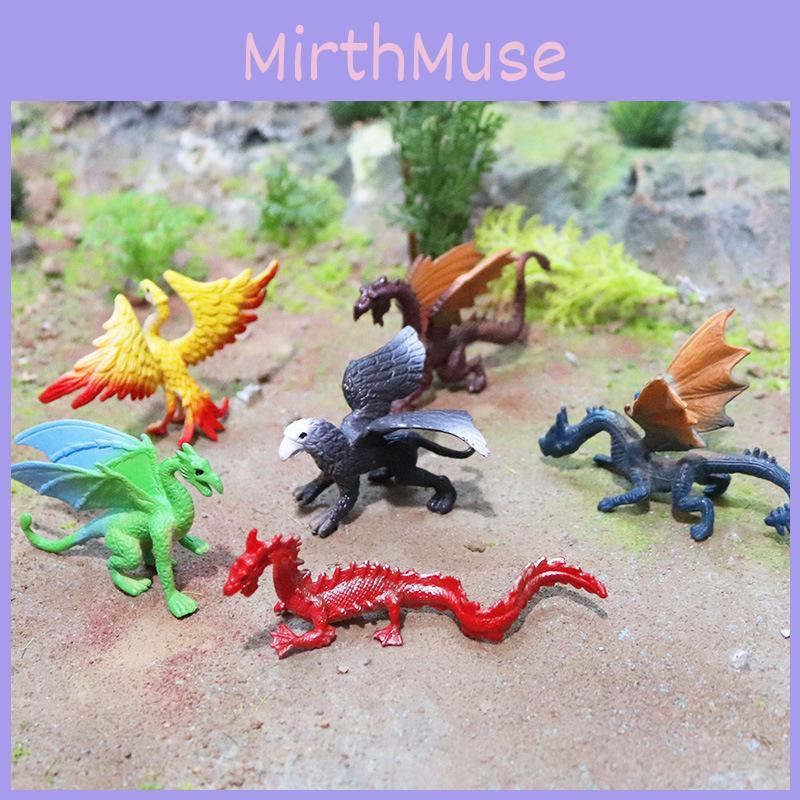 This miniature dinosaur and mythological creature set features static models crafted from durable plastic material. Each piece measures approximately 3 to 6 cm, ideal for display or collection purposes. The collection includes fantasy animals like dragons, phoenixes, and African wildlife, suitable for imaginative play or decorative use. Easy to clean with a damp cloth, these figures are perfect for children's playrooms or display shelves.