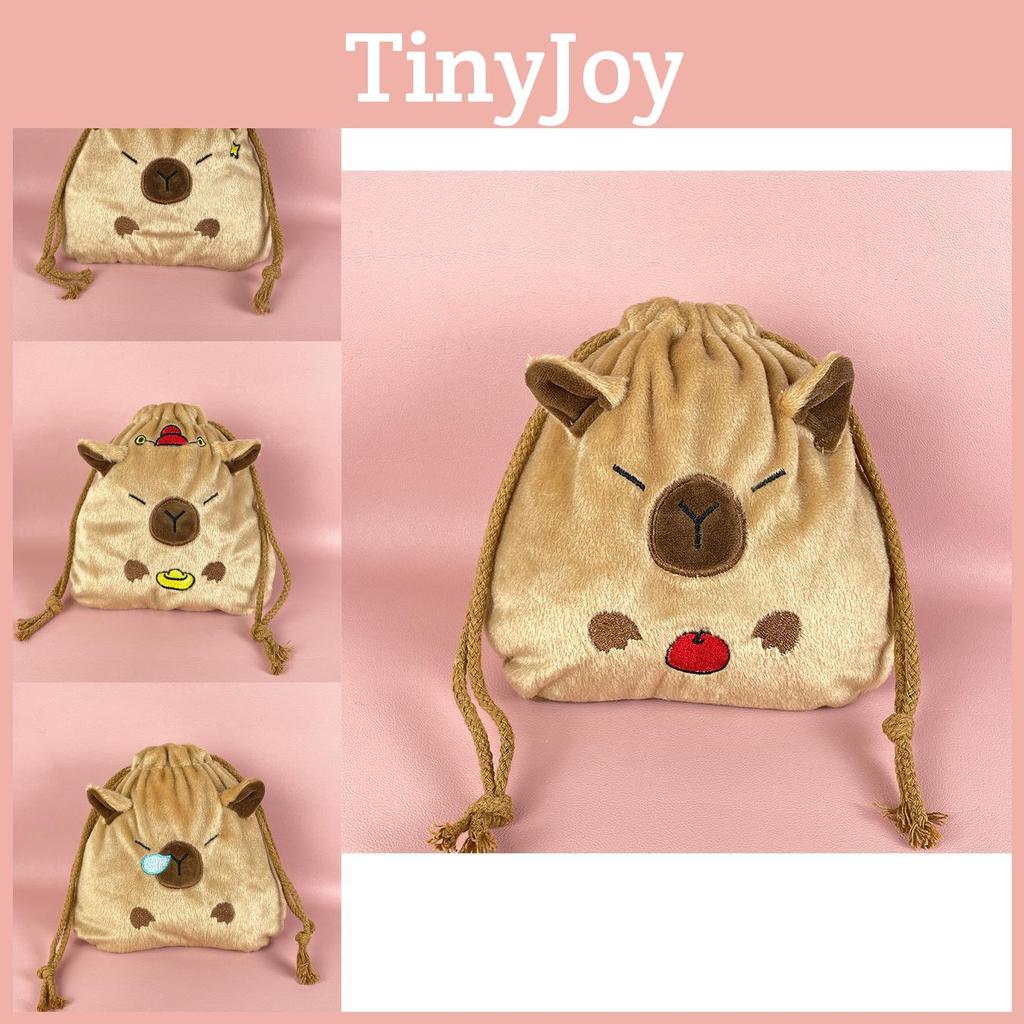Adorable Capybara Plush Drawstring Bag Large Capacity Cute Storage Pouch