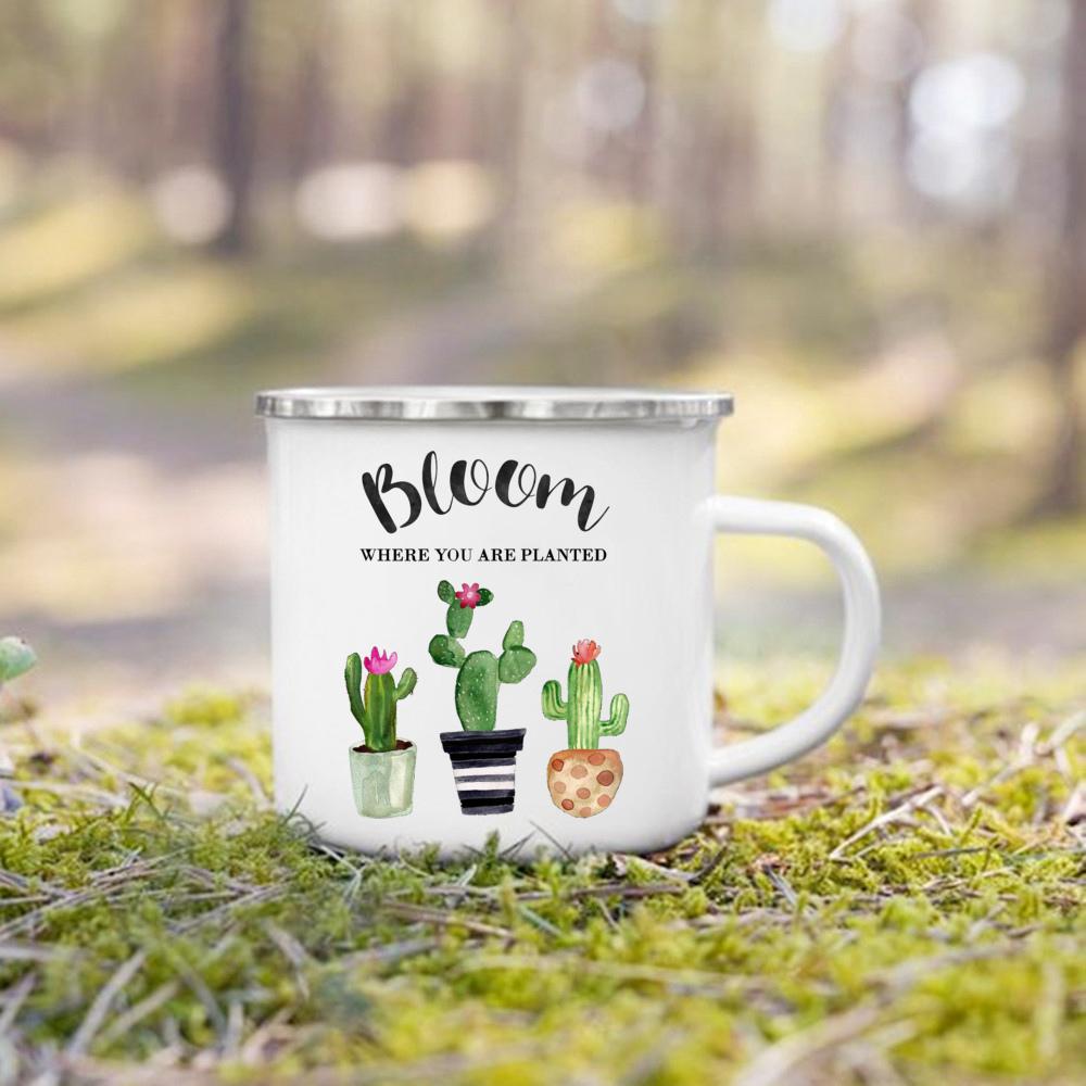 Cană Emailată cu Imprimeu Plantă Cactus Vară Camping Căni Foc de Tabără Căni Creative pentru Cafea Apă Lapte Mâner Veselă pentru Băut Cadouri pentru Camper