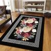 Bold Boho Flower Black Background Accent Mat Purple Blue Orange Floral DecorCheckered Edge CarpetWashable Rug