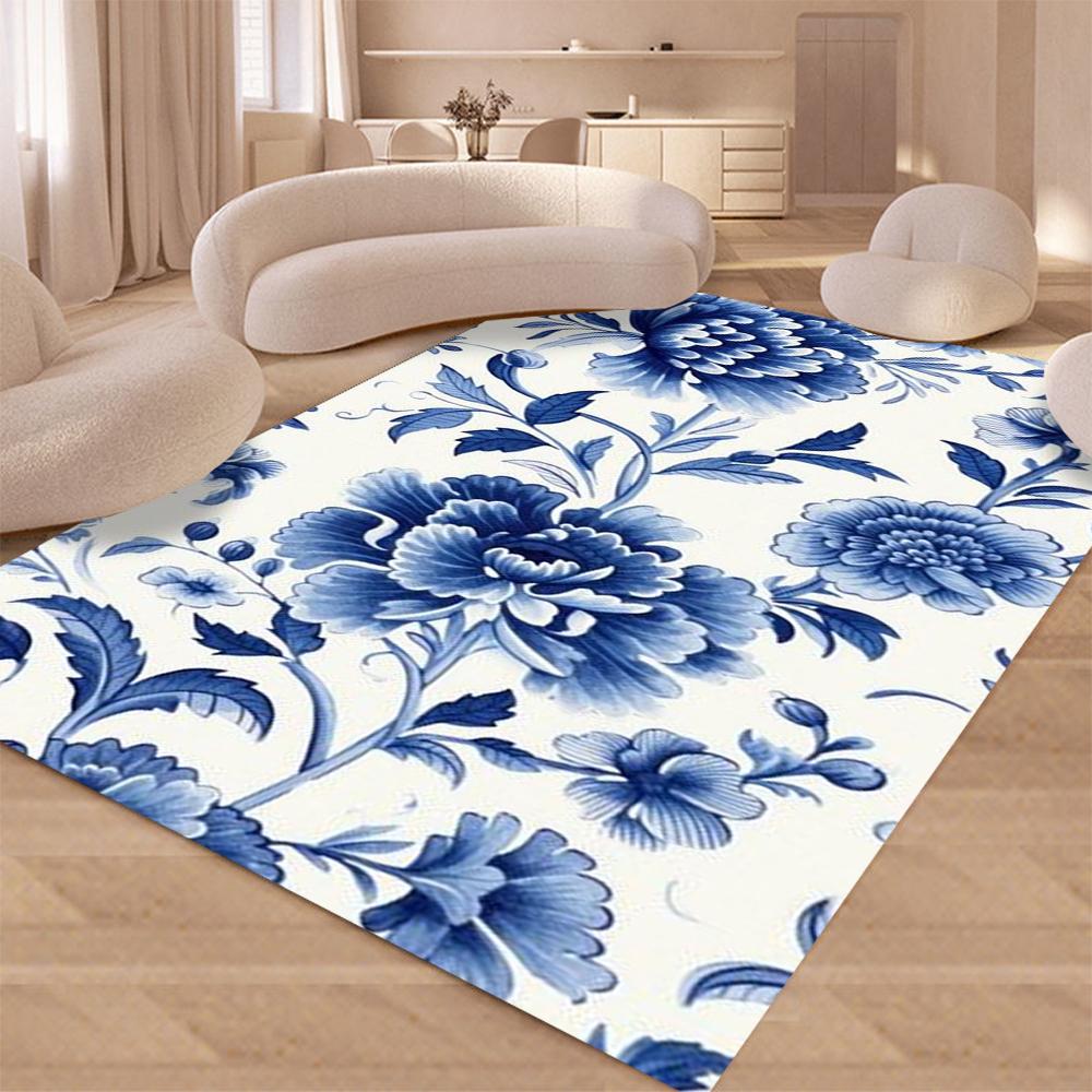 Covor de porțelan albastru, albastru și alb, design de covor, lavabil, pentru casă, living, bucătărie, dormitor, covoare antiderapante