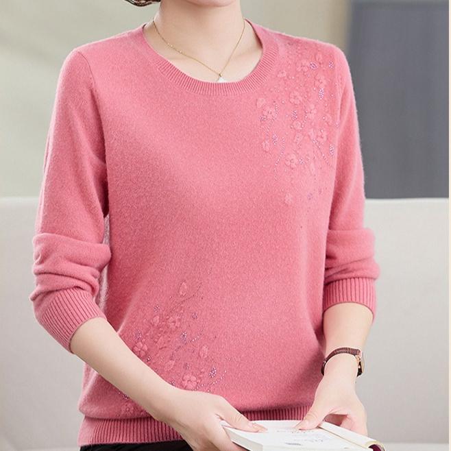 Pulover de lână pentru femei plus size, croială largă, broderie cu strasuri, tricotat, pulover, culoare uni, top tricotat moale