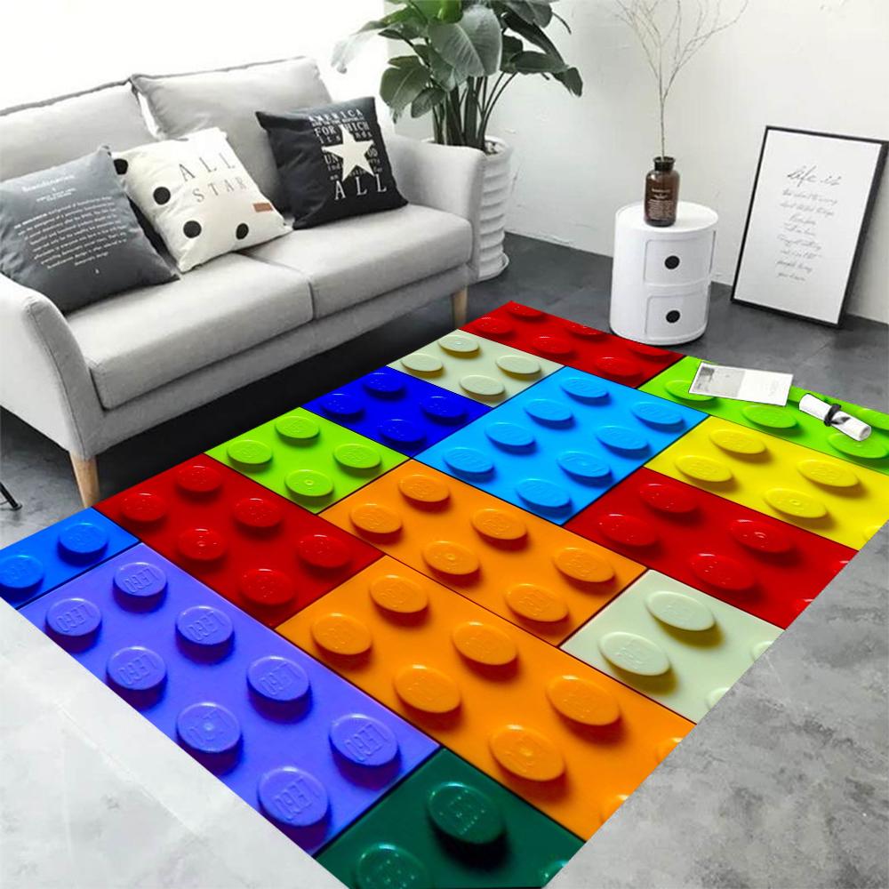 Colorful Geometric Building Blocks Toy Entrance Door Mat Washable Non-Slip Living Room Sofa Chairs Area Mat Kitchen Welcome