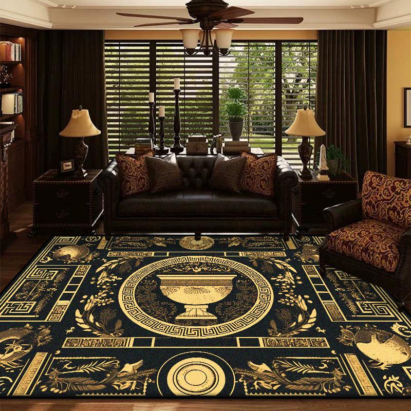 Black Golden Living Room Carpet Luxury Home Decoration Cup Large Area Rugs 200x300 Bedroom Lounge Non-slip Washable Floor Mat