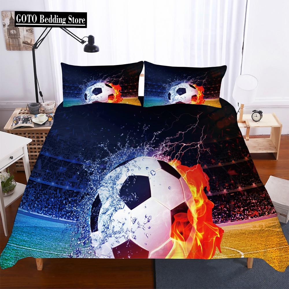 Microfiber Fabric Beddings Soccer Duvet Cover Sets for Boy Print Football Comforter Bedding Sets Three Piece Set Men Bedclothes
