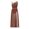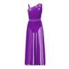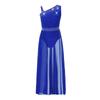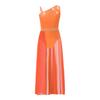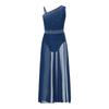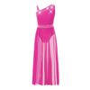 Girls Glittery Lyrical Dance Costume Colorful Rhinestones Asymmetrical Shoulder Sleeveless Sheer Mesh Skirted Leotard