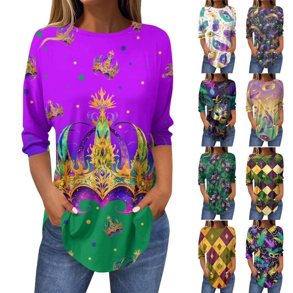 Womens T Shirts 3/4 Sleeve Shirts Solid Color Pullover Summer Spring Tops Blouses