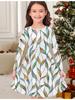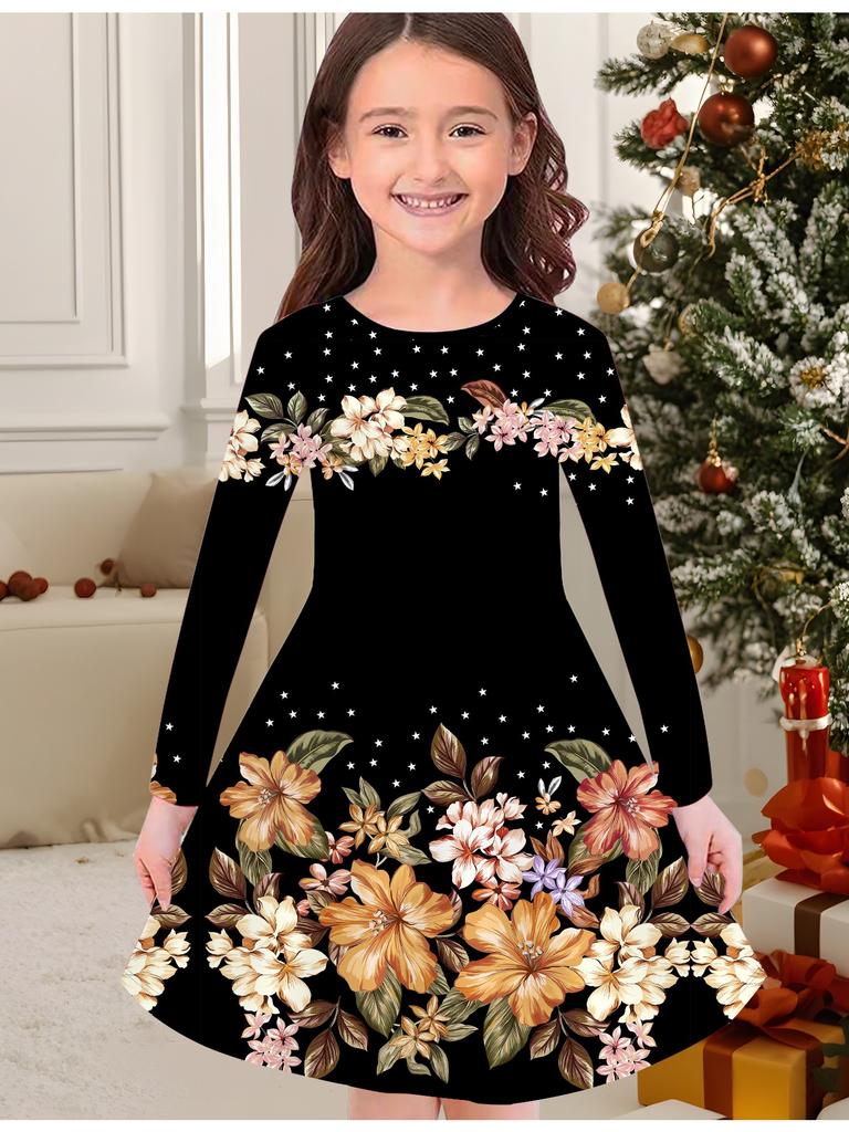 Rochie de Modă de Toamnă și Iarnă pentru Fete, Imprimeu Floral 3D, Gât Rotund, Mânecă Lungă, Rochie Tricou Lungă pentru Copii, Casual Versatilă, Îmbrăcăminte de Crăciun