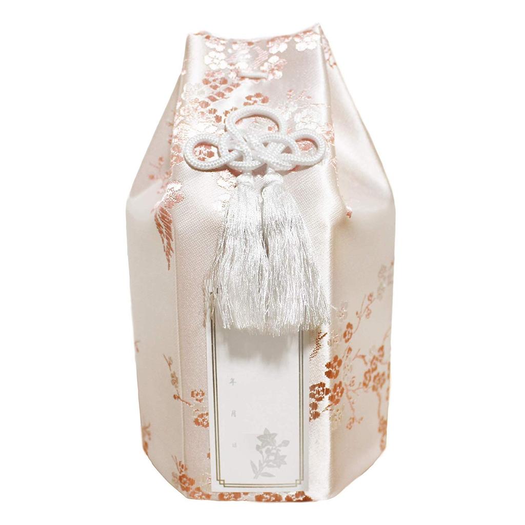 Silk Plum Blossom Urn Cover (Pink, 4 inches) - Includes Buddhist Name Sticker, Perfect for Keeping Funerals
